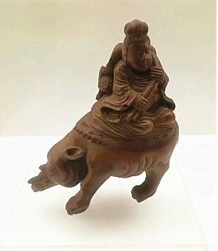 汉钟离(钟离权)是道教全真派的“正阳祖师”,在八仙中为头梳双髻,手执宝扇的形象。汉钟离曾十试吕洞宾,度其成仙,还传授他“点石成金”的道法。也正因为此法,钟、吕二仙受到民间的崇奉,认为有护佑金矿、财运的功能。