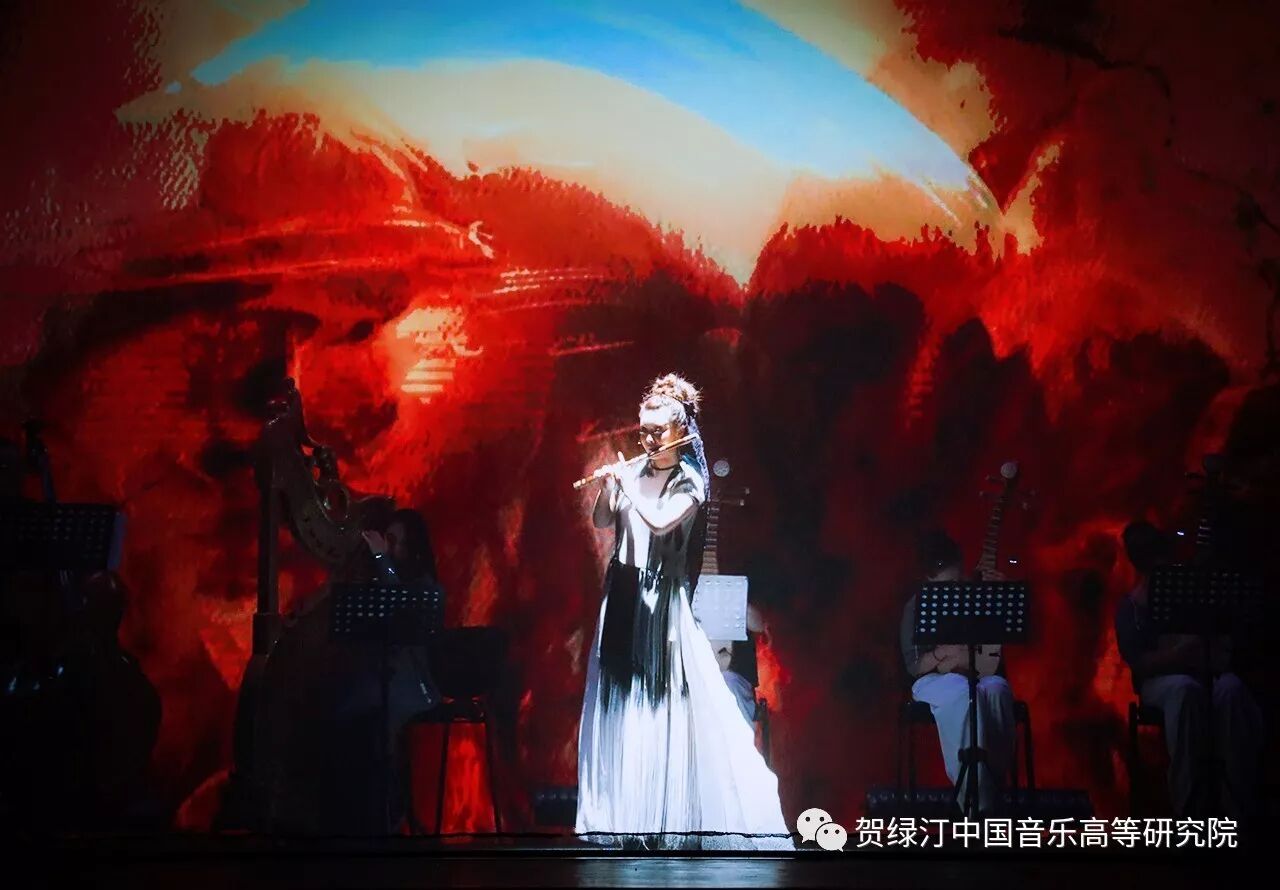 高研院中国竹笛艺术中心主任唐俊乔教授领衔独奏的竹笛与乐队、多媒体影像《龟兹宴舞》上演,我院“新艺术季----东去西来多媒体音乐会”好评如潮。