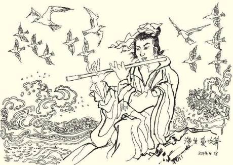 海生每天帮助哥嫂劳动,空下来就喜欢吹凤凰箫。早上吹,晚上吹,常常一个人坐在海边石头上对着大海吹。由于勤学苦练,他的箫声优美动听,有了知音。海鸟听到箫声会飞来陪他;海水听到箫声会掀波起舞。海风把箫声送到了很远很远的地方。这优美动听哀 伤的箫声被东海龙王的女儿听到了。她听出了箫声的忧伤与渴望。