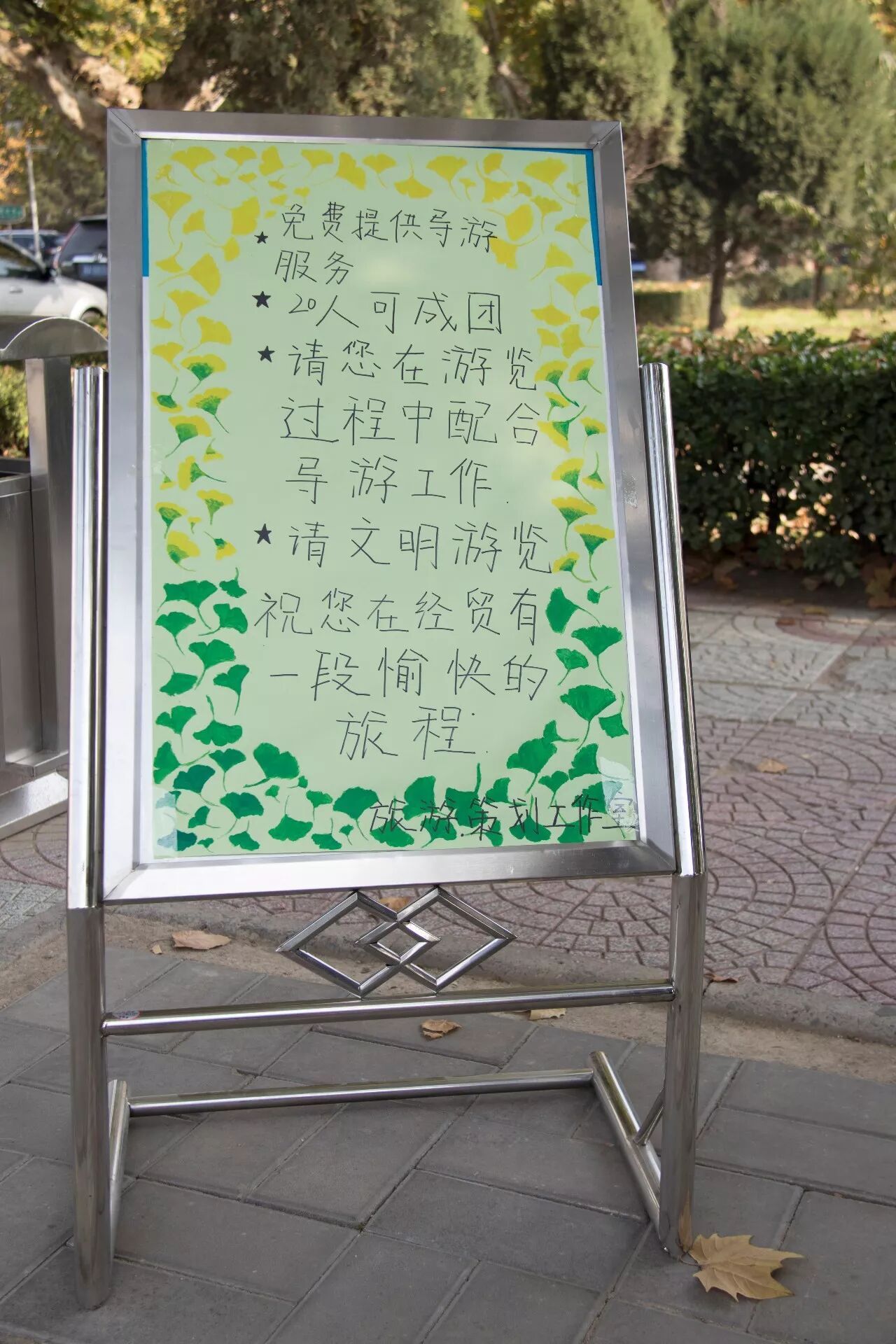 青年志愿者们很早就在路边搭起了服务站点,他们说:“防止校外的游客迷路就精心准备了经贸的漫画版地图,还为游客们提供免费的矿泉水。”游客肯定会被我们经贸学子感动吧。志愿者们还说:“早上虽然很冷但帮助别人心里还是暖暖的。虽然很忙但感觉很开心。”还为我们送上了祝福,希望经贸银杏节越办越好,祝游客们玩得开心。