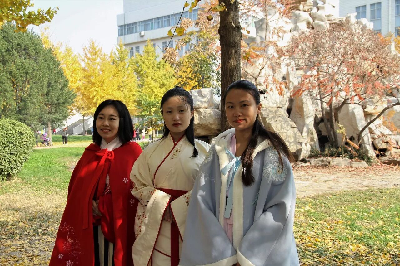 迎面而来的是几位汉韵社的姑娘。身着汉服,她们的一颦一笑让人如沐春风,即使在这寒冷的季节也感到些许暖意。她们都喜欢这次的银杏节,美景使人流连忘返,各式各样的活动也让人目不暇接。看见这么多人来欣赏景色,她们为学校而感到高兴。并且她们也为游客讲解汉文化,让更多的人了解汉服,了解汉文化。在银杏树下,与文化相遇,何其美哉!