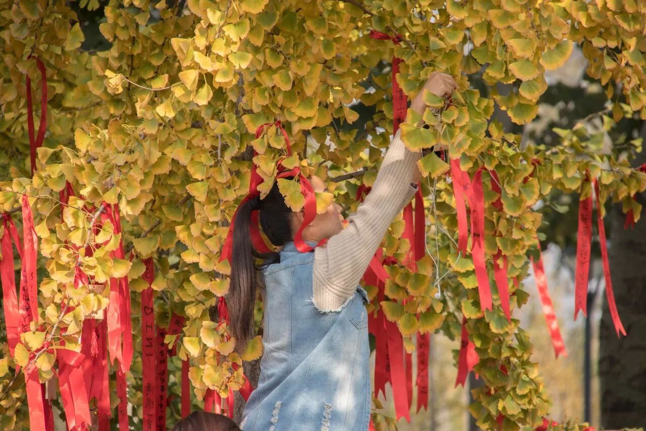 祈福树下偶遇组团来的叔叔阿姨,虽然不是第一次来看银杏,但他们还是很兴奋,谈到经贸大学,他们对银杏林的美景赞不绝口,偌大的校园和热情洋溢的大学生让他们感觉像是回到了自己的学生时代。“对生活充满希望,日子肯定是越过越红火。”他们说这就是简单而满足的幸福感。岁月长存,青春不老是对自己最真挚的祝福。