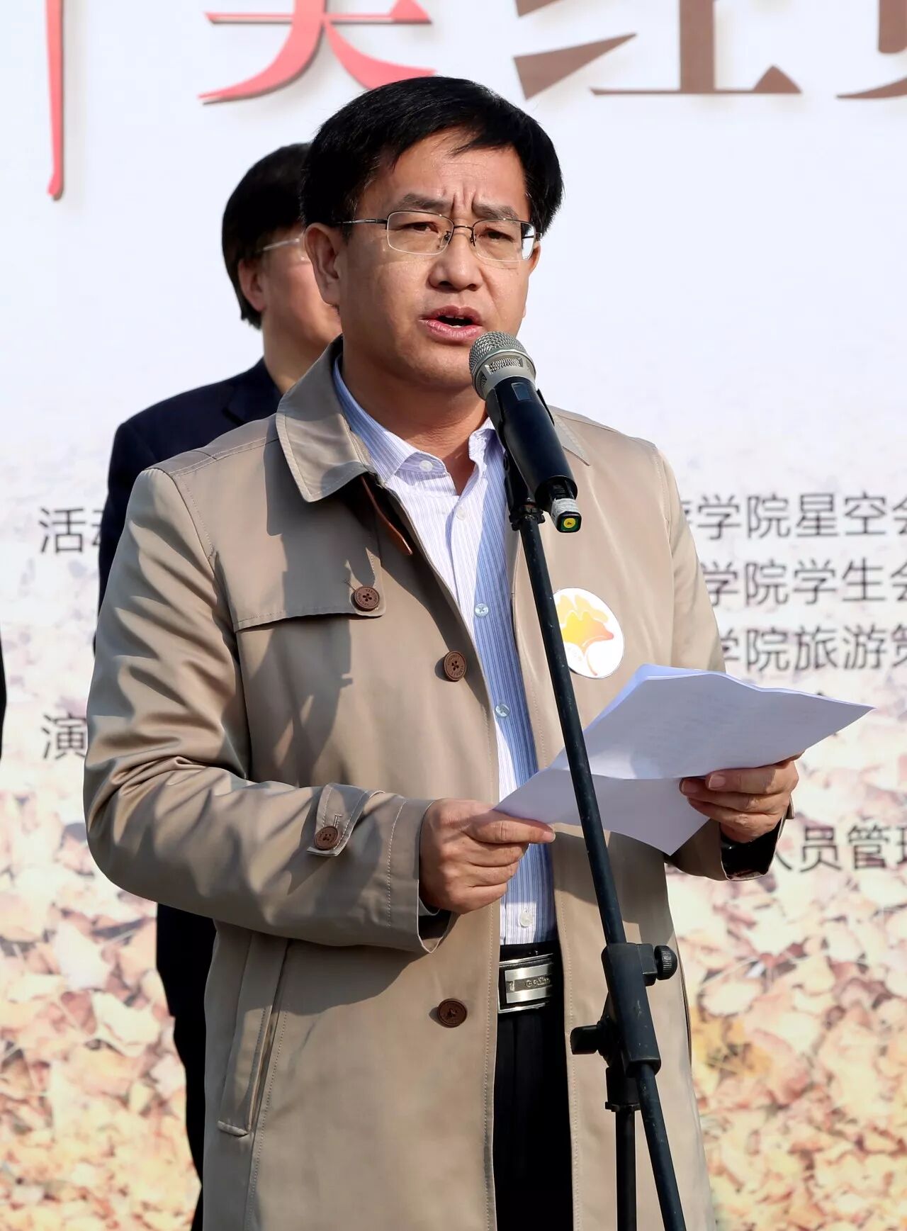 校党委常委陈亮致辞:“经贸大学环境优美,被誉为‘花园式校园’。深秋经贸的银杏树作为学校最靓丽的一道风景,被媒体称赞为‘大学校园里的最美秋色’。举办此次金秋银杏节市民共享日活动,我们希望以银杏为媒,通过一系列丰富多彩的‘共赏’活动,能够让更多的朋友走进经贸校园、感受经贸文化,搭建起学校与社会各界沟通的新桥梁。”