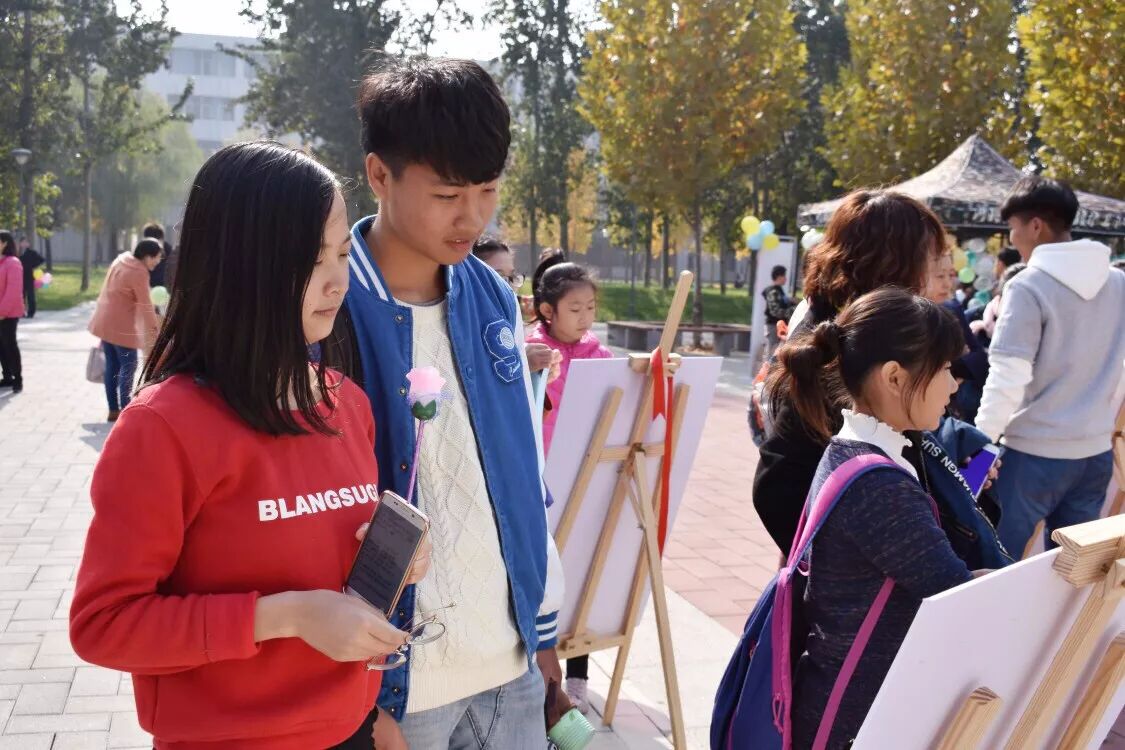 上午11点开幕式结束后,三教c区后方陆陆续续新增了许多前来参观游览的校内外游客,宽阔的场地逐渐热闹起来,男女老少,络绎不绝。别具一格的文字活动不一会儿就吸引了大量校内学子和校外人士前来参加,主题栏也很快就被故事和美句填满。
