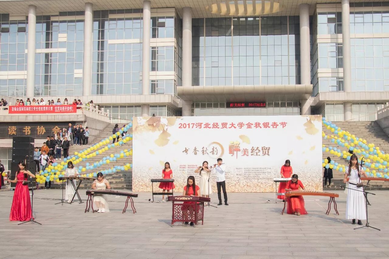 2017年11月4日上午10点整,“书香秋韵,醉美经贸”第一届河北经贸大学金秋银杏节盛大开幕。