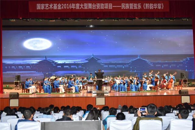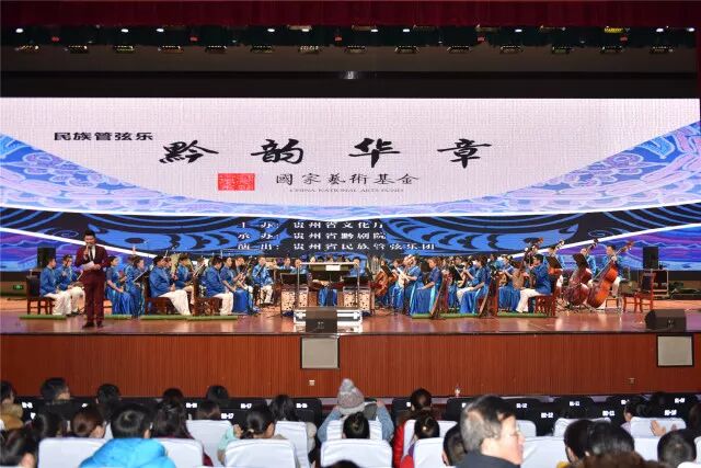 侗族“大歌”、苗族芦笙、文琴戏一一登台亮相……12月2日晚19:00,由贵州省文化厅主办,贵州省黔剧院、贵州省民族管弦乐团共同打造的《黔韵华章》民族管弦乐演奏会,在我校新蒲校区会堂上演。我校党委副书记田宗远、副校长蔡善君出席活动现场,与3000余名师生共同欣赏了一场民族管弦乐的视听盛宴。