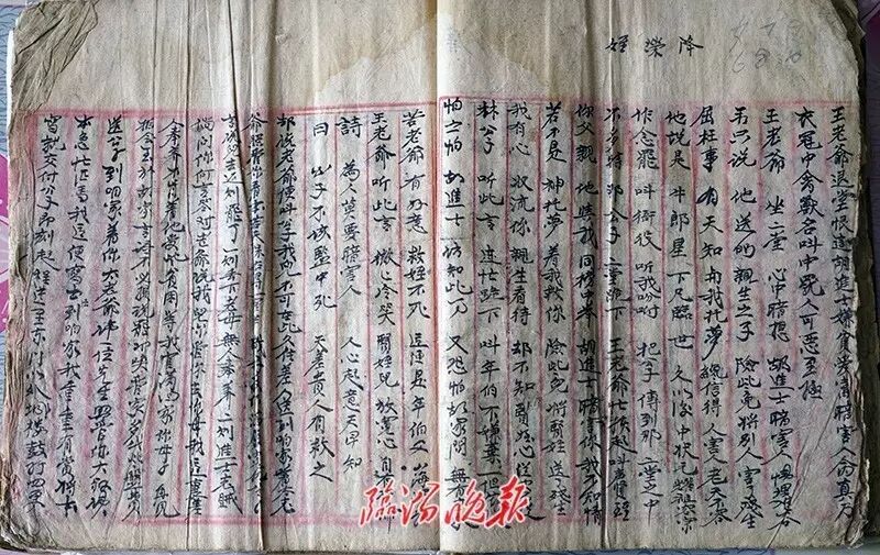 走进76岁的葛复英家,他从箱中拿出传家宝,小心翼翼地解开包裹布。牛皮纸上“民国二十六年(公元1937年)”的字样清晰可见。红色的“金钗宝卷”字样要仔细辨认。每一个篇章都有诗句。“公子访奴到此间,实想以后配姻缘。不料今朝死得苦,奴身也愿入黄泉。”通过这个段落的开头诗,就吸引观众想继续听完这个爱情悲剧。