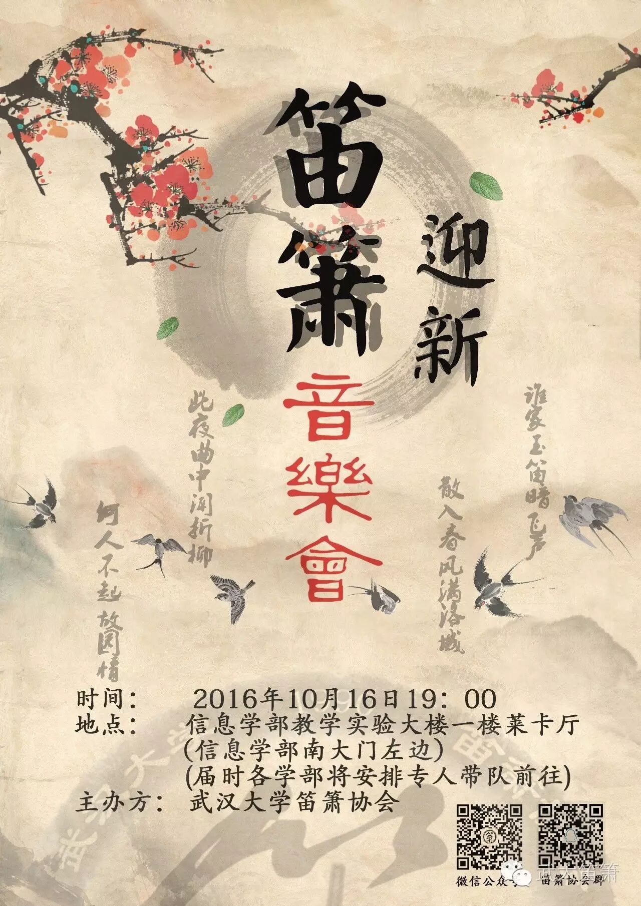 一年一度的一梦笛箫音乐会是武大笛箫最盛大的活动,不管是刚入门,还是已经苦练数载的笛箫人,在这里,都会有你的一片舞台!