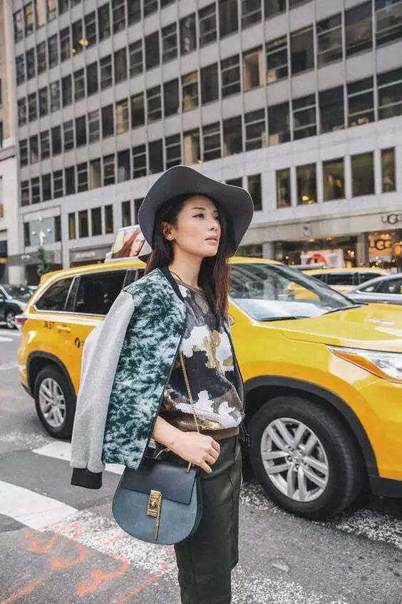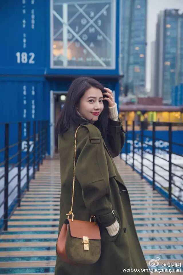 ▲圆圆女神又出镜啦。看来对Chloé是真爱。军绿色麂皮和军绿色大衣配到没朋友,再加上回眸一笑的温婉眼神,不知又迷死多少少男。
