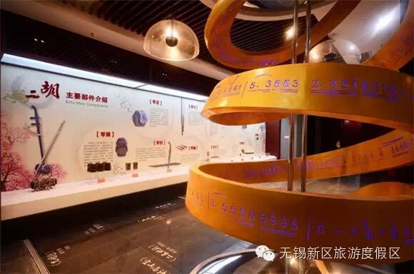 三层空间,以二胡文化产业发展为主题,通过实物与展板等形式,展示全国二胡制作大师的风采神韵和精湛工艺,讲述梅村二胡制作企业的发展历程与概况,给观众描绘梅村二胡文化产业的蓝图和愿景。