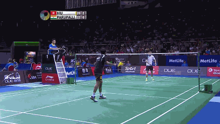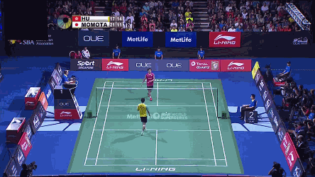 胡赟反手发网前球,基本不发网前外侧角,更少见反手偷袭后场(高远球、平射球、平高球)。正手发后场高球,明显是胡赟在20比11领先时闹着玩玩。