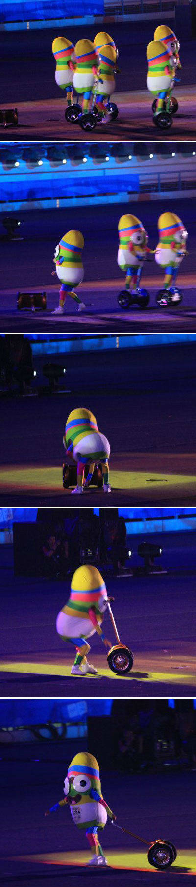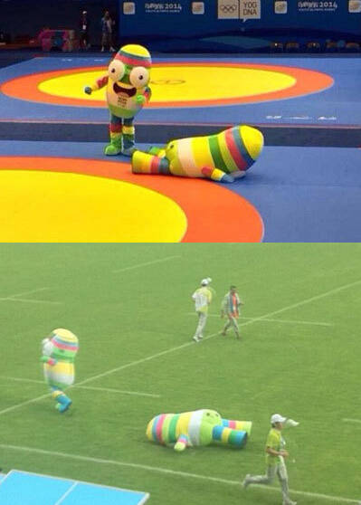 后面那个吉祥物应该是正在思考该怎么处理这种突发情况,经过激烈的心理斗争后,他决定……假装四处看风景