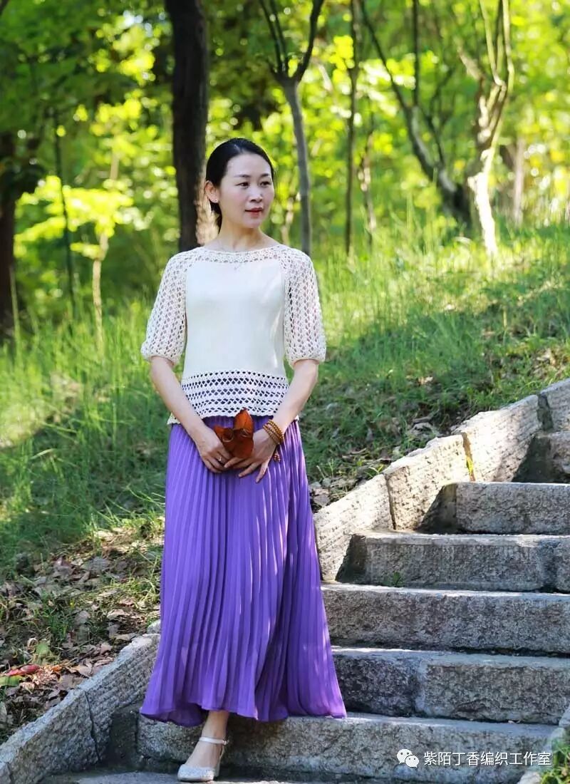 | 2、圆肩花样:夏款,蕾丝套头衫(钩织结合借鉴款) |