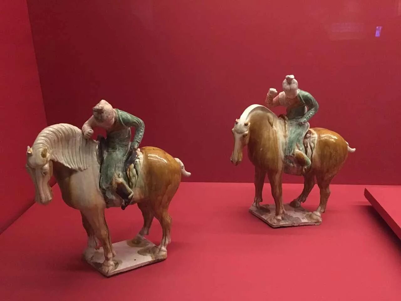在商業運輸上,為了長途跋涉運輸貨物,必須依賴動物馱運,一萬多公里的的絲綢之路駝馬嘶鳴,來自西亞和中亞的駱駝是當時極為重要的運輸動物,同時西域的戰馬也經過此道路進入中原。漢唐時期有大量以駝馬為主題的藝術珍品,尤其是被後世稱「唐三彩」的唐朝彩色陶俑,歷經千年依然色彩奪目,成為當年繁榮貿易的見證。