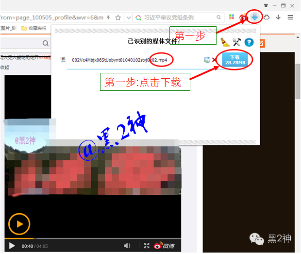 2.安装成功后浏览器会出现一个新增下载应用,那么我们可用它来下载我们想要的视频,首先找到2神发布的视频短片。点击播放。播放后右上角下载图标会显亮,我们点击它下载.下载完成后就可以在本地电脑播放了