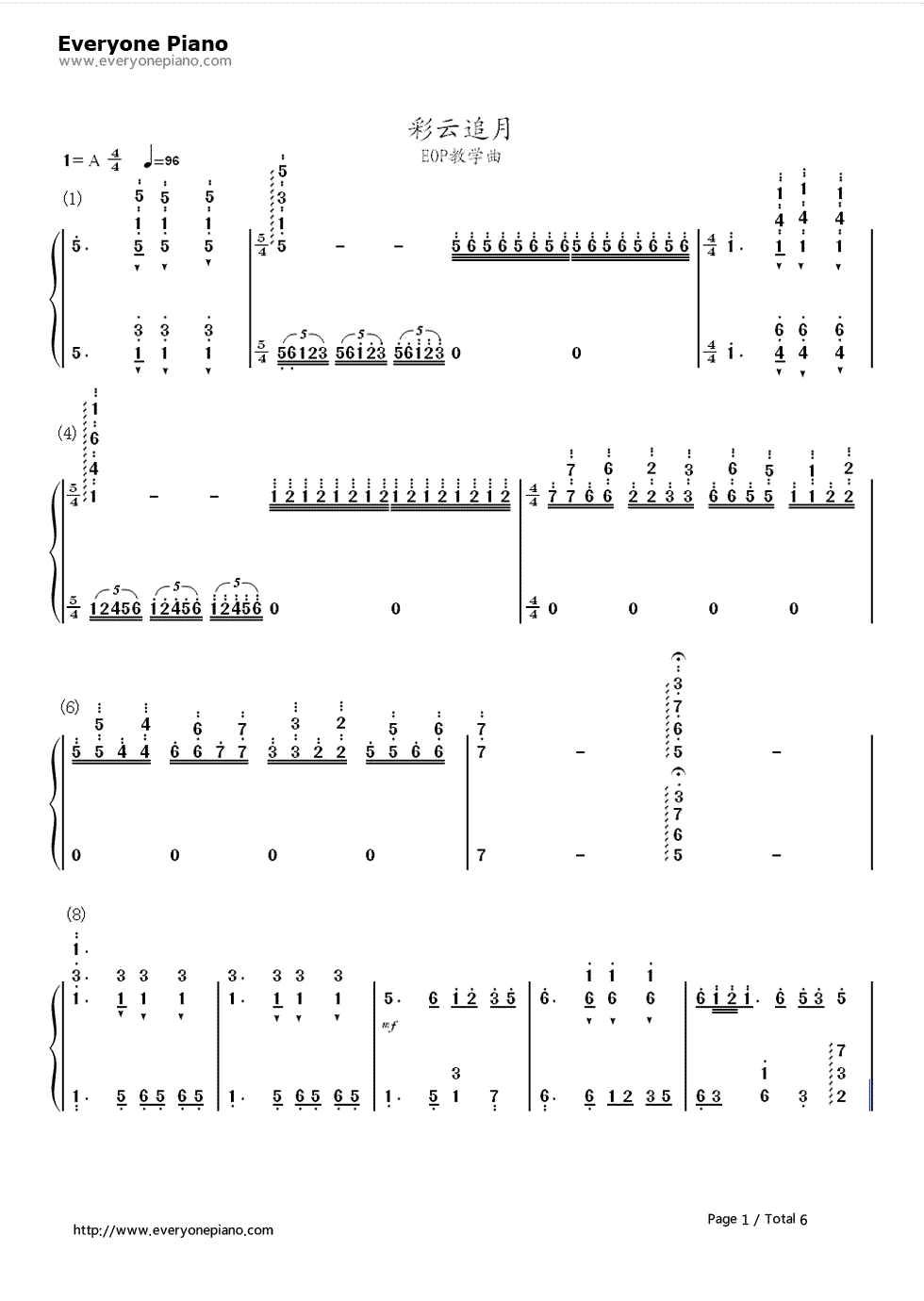 下面是简单版的钢琴曲,适合感兴趣的学员,弹奏上手极快。