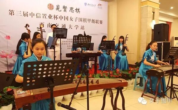 ——中国女子围棋的口号——德言容功·棋和天下2015年10月27日,第三届“中信置业杯”中国女子围棋甲级联赛西南交通大学站在校园内开幕。西南交大师生准备了丰富多彩的才艺展示,令开幕式精彩不断。洛阳君河湾队的李赫一曲琵琶独奏,更是让人眼前一亮。开幕式花絮李赫在化妆李赫登台琵琶独奏才艺展示变脸才艺展示中国古典乐器才艺展示情歌对唱才艺展示《独上西楼》才艺展示《一剪梅》才艺展示书法才艺展示箫才艺展示笛才艺展示古琴表演环节主持人西南交大学生开幕式现场嘉宾落座中国围棋协会副主席林建超将军西南交大校长徐飞 致辞开幕式主持人黄子忠第三届“中信置业杯”中国女子围棋甲级联赛第11轮比赛,将于28日上午10点30分开始,详细对阵如下:厦门观音山队 VS 芜湖华益阀门队(黑)鲁佳 二段 VS (白)范蔚菁 二段(白)张子涵 初段 VS (黑)周泓余 初段德州围棋协会队 VS 洛阳君河湾队(黑)张天歌 初段 VS (白)李赫 五段(白)袁亭昱 初段 VS (黑)汪雨博 初段湖南友谊阿波罗队 VS 广东天禾农资队(黑)王祥云 二段 VS (白)陈一鸣 二段(白)王爽 初段 VS (黑)郑岩 二段杭州市围棋队 VS 北京棋院队(黑)高星 二段 VS (白)曹又尹 三段(白)宋容慧 五段 VS (黑)张佩佩 二段上海北极绒队 VS 天域生态江苏队(黑)唐奕 二段 VS (白)於之莹 五段(白)芮乃伟 九段 VS (黑)王晨星 五段【女子围甲】 一个希望给予每个人爱与温暖的公众号点击下方“阅读原文”了解更多女子围甲故事↓↓↓