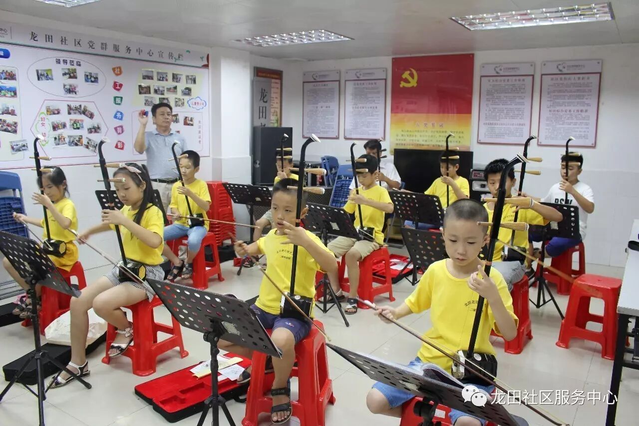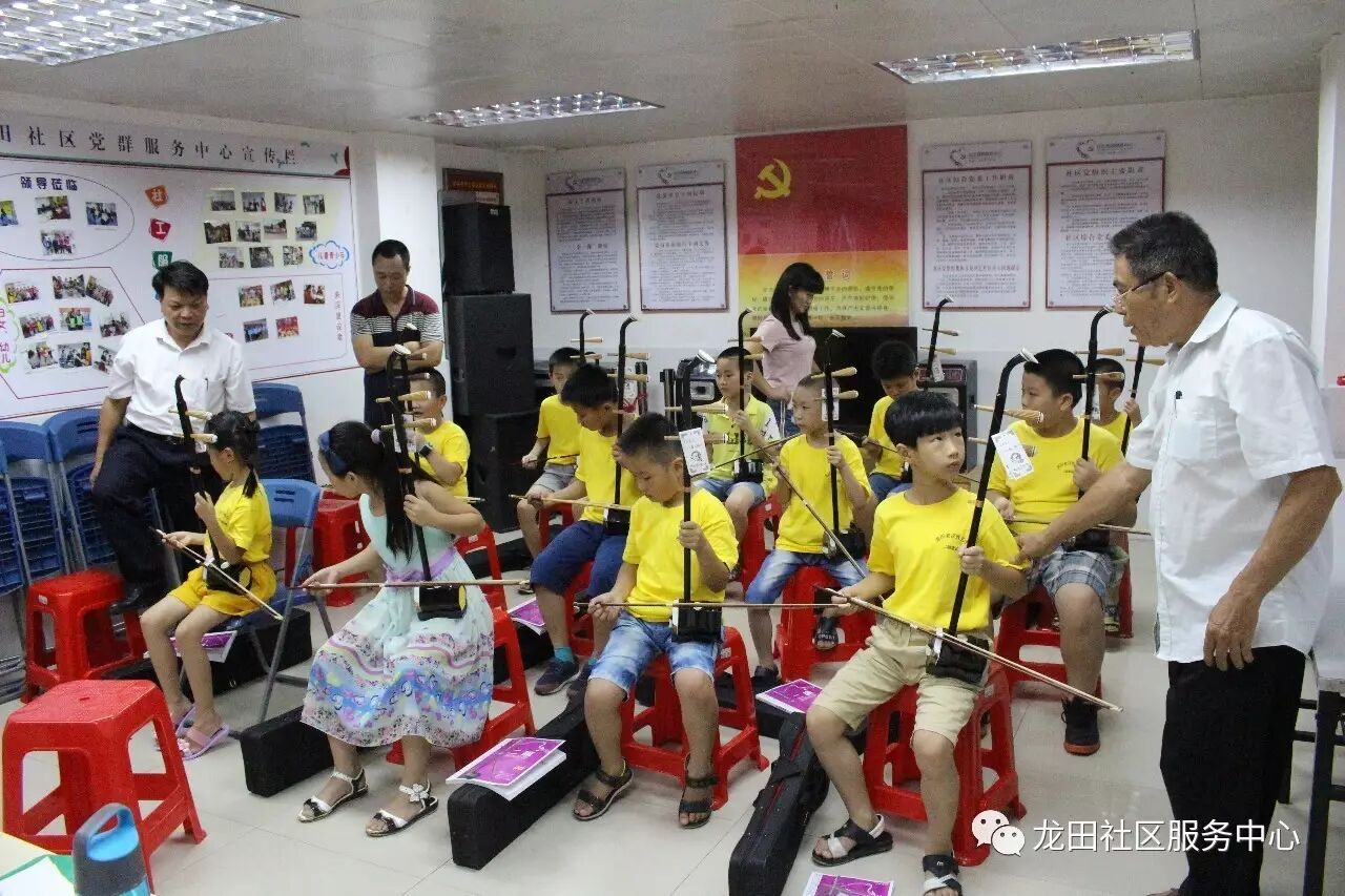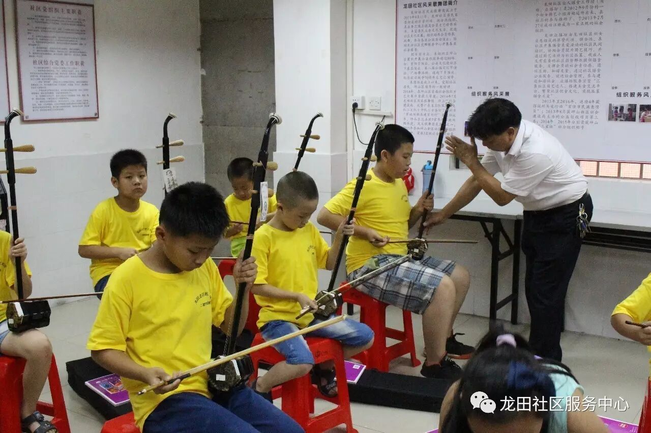 2017年7月12日至2017年8月13日期间,龙田社区党群服务中心联合老百姓艺术团组织开展了一期二胡公益学习班,共有13名儿童青少年参加学习。