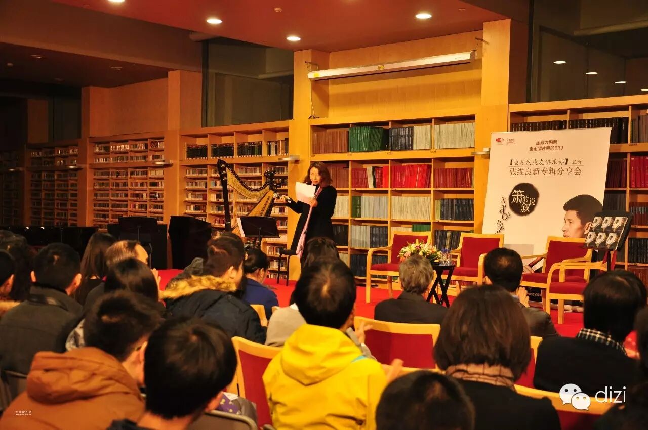 [摄影:中国笛子网NN]12月26日上午,由中国唱片总公司与国家大剧院共同举办的笛箫大师张维良《箫的叙说》新专辑分享会在国家大剧院艺术资料中心成功举办。本次活动以张维良先生的新专辑《箫的叙说》发布作为契机而举办,中国唱片总公司副经理候钧先生、玉屏侗族自治县文化产业发展办公室主任李丽女士分别致词祝贺张维良先生新专辑发布。