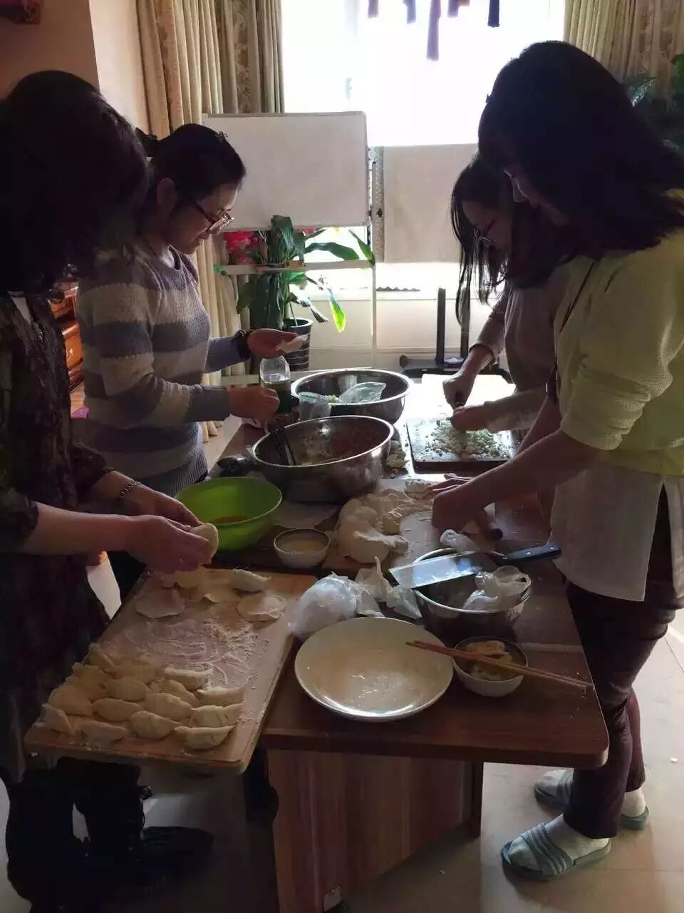 一月一日早上9点钟开始,晓虹、湘杰、冉冉还有其他师兄早早的过来道场准备中午包饺子的各项准备工作,切菜、和面、幹皮,大家各自领取自己的任务后,一切都在有条不紊、热火朝天的进行中。