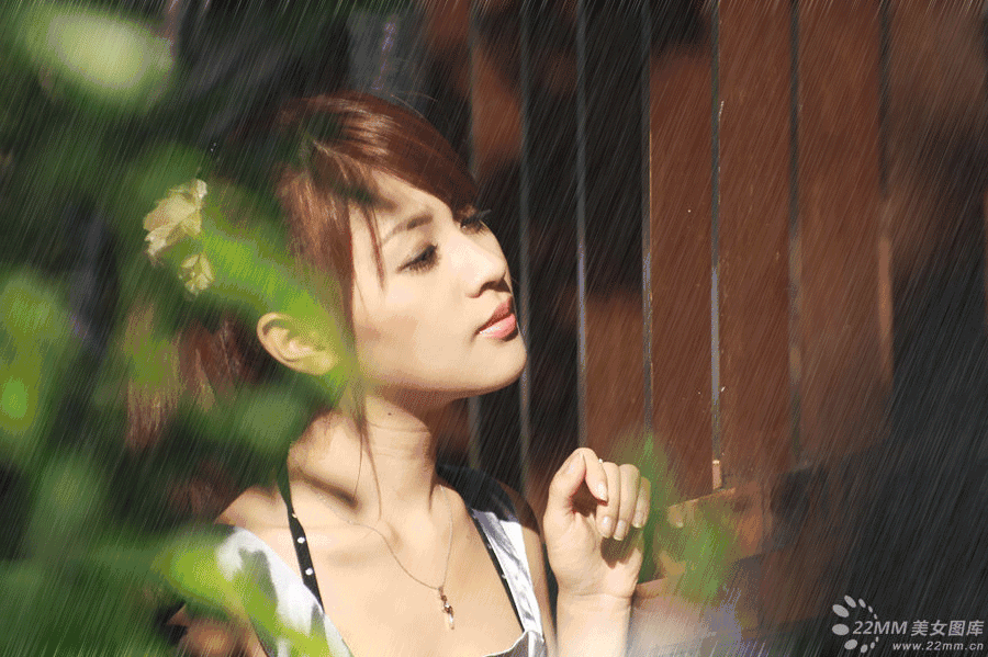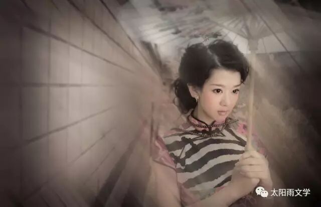 独倚窗棂檐雨漏,伊人桥上,红伞浸透。