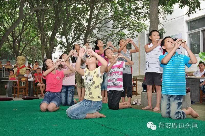 透过午后的阳光,从教室里飘出欢快的竖笛声,古宅的孩子们又在练习他们的传统曲目——— 《草蜢弄鸡公》。闽南乡音的竖笛声,动听的旋律,让人不由得沉醉其中。