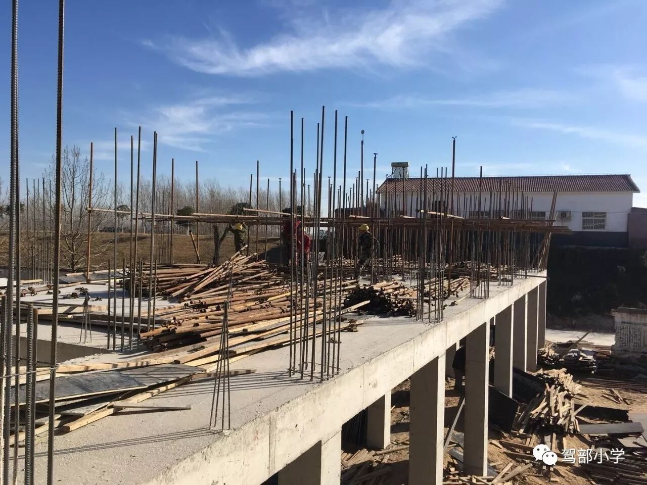 综合楼工地,昨天工人又回来了,开始搭二层主体的架子——