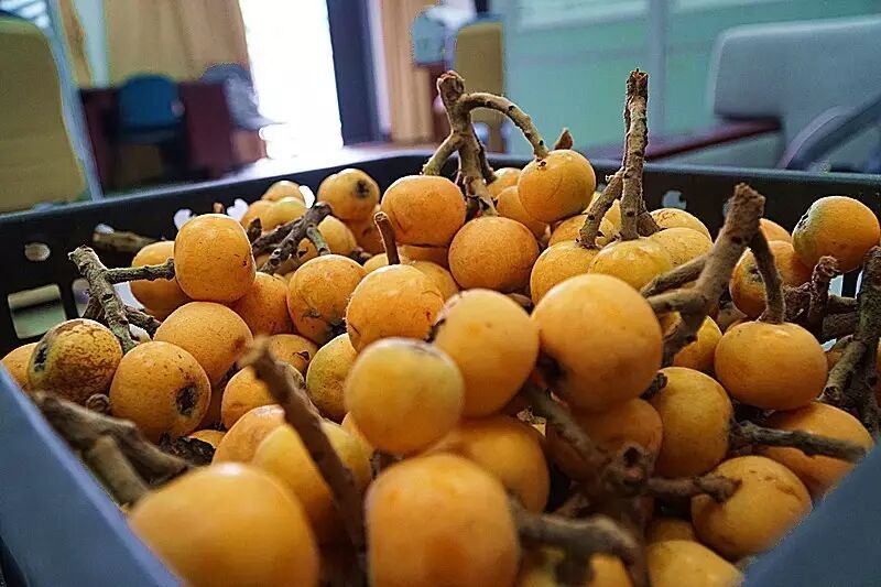 于是后勤的师傅们,顶烈日,战高温,不惧高,不怕险,克服了树高虫多的困难,勇攀高枝,披荆斩棘,只为了师生们能尝上甜美的枇杷。