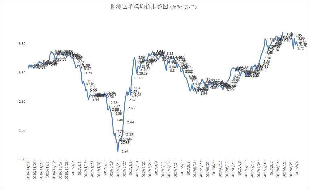 毛鸡价格行情(白羽肉鸡)(单位:元/斤)