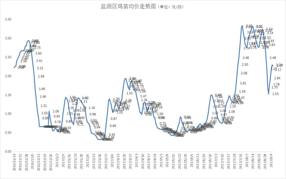 鸡苗行情(白羽肉鸡)(单位:元/羽)