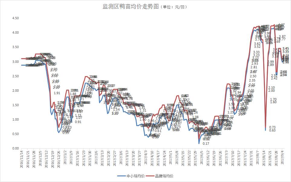 明日鸭苗报价上涨。北方计划稍好,但产品价格下滑,明天报价上涨;南方出苗少,计划顺畅,报价上涨,注:部分厂家高报低走,预计近期鸭苗价格呈震荡调整趋势。