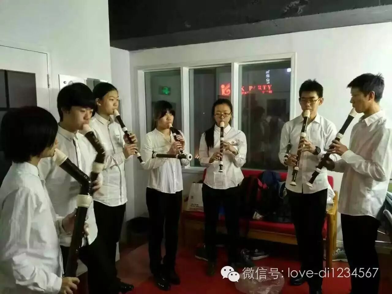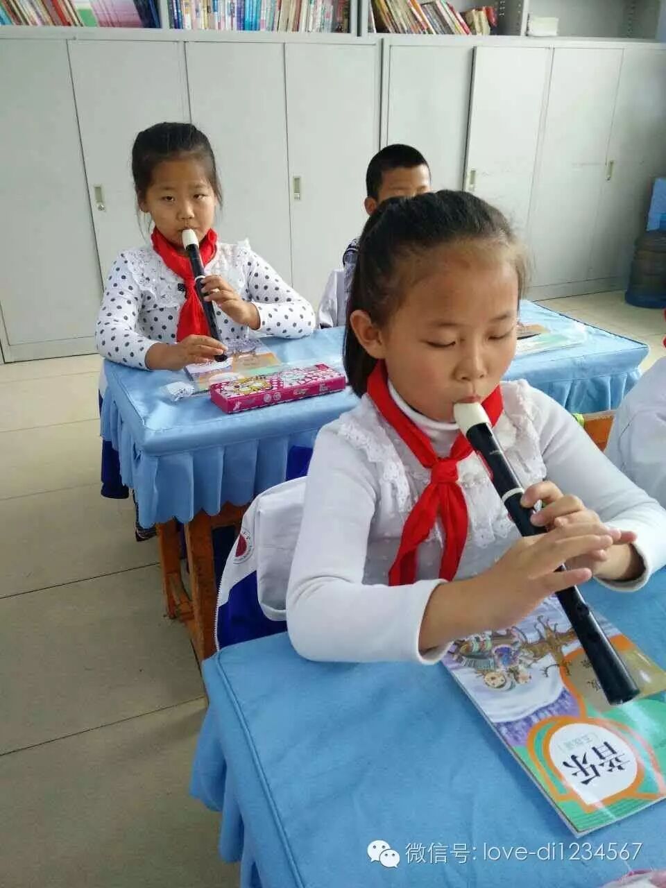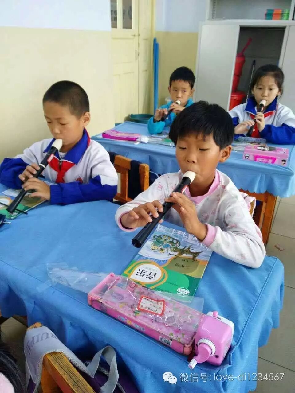 专心吹笛的孩子们