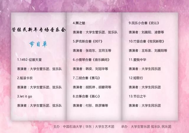 绚丽夜晚的结束,意味着新的明天马上到来,也意味着管弦民乐团在石大走过了精彩的2017,走向了更精彩的2018。愿我们继续昨日的灿烂与光荣,愿明天的乐团能一直有你的陪伴。