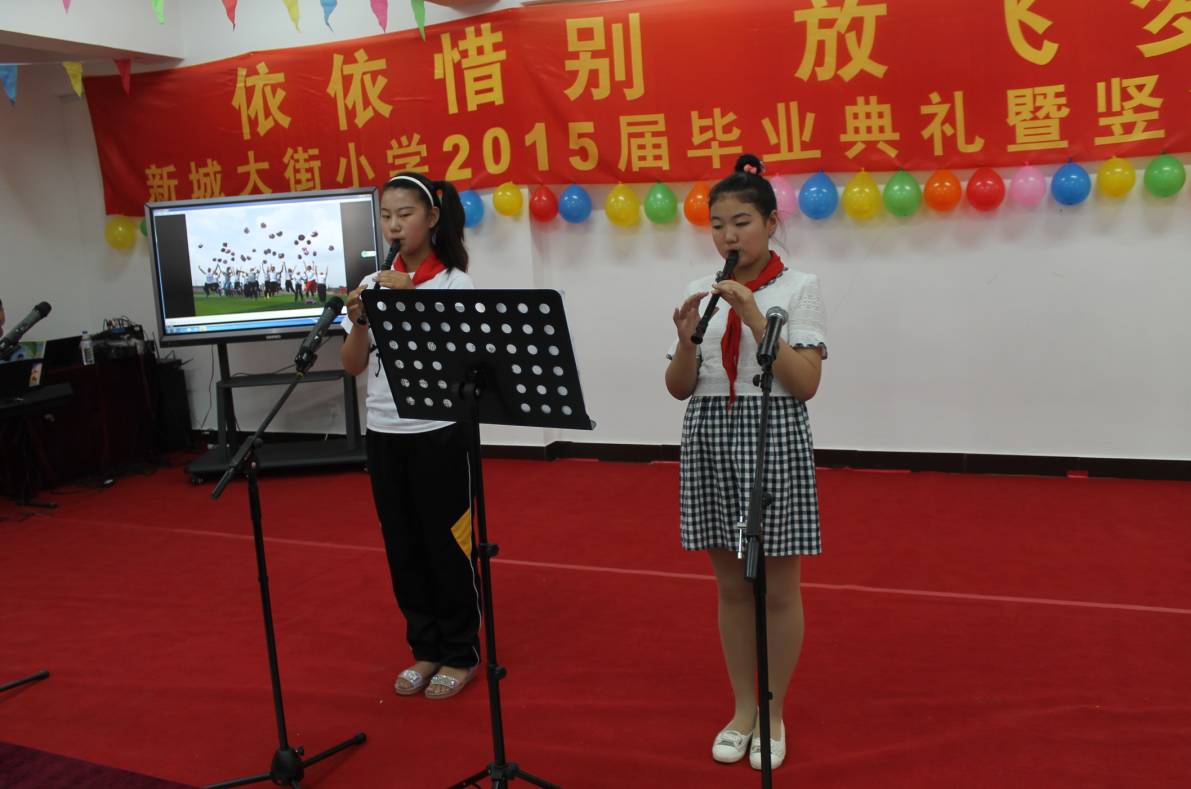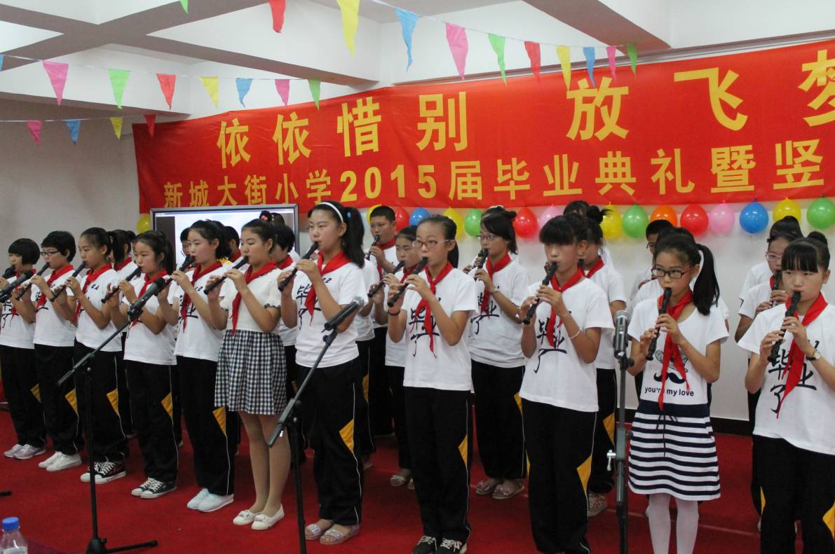 竖笛汇报演出是毕业季活动的重要环节,也将毕业典礼推上一个小高潮。同学们的精彩表演给在场的来宾和家长们留下了深刻的印象,这是毕业生们对母校的眷恋和感恩,更是面对未来、迎接挑战的浓浓自信。同时,这场汇报演出,也为孩子们为期三年的竖笛教学交上了一份满意的答卷。四、五年级的学弟学妹们作为助演嘉宾也献上了精彩的表演,也充分展现了新城大街小学多年来艺术教育方面的丰硕成果!