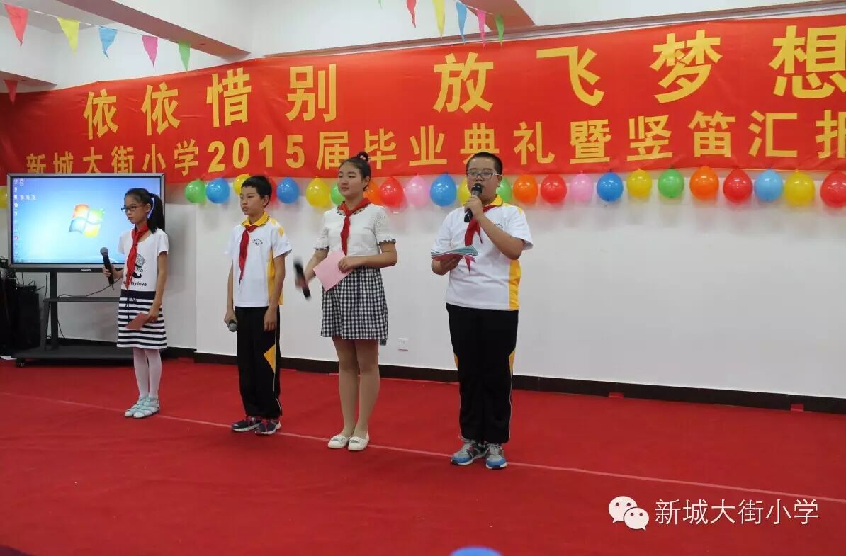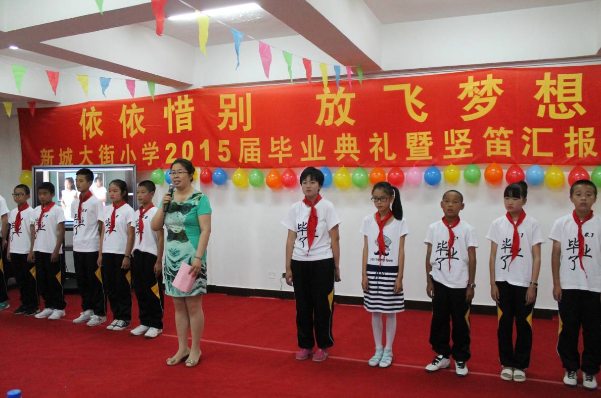 新城大街小学部分师生和毕业班的全体学生、部分家长共计二百余人,共同见证了一场隆重而又充满真情的毕业典礼。