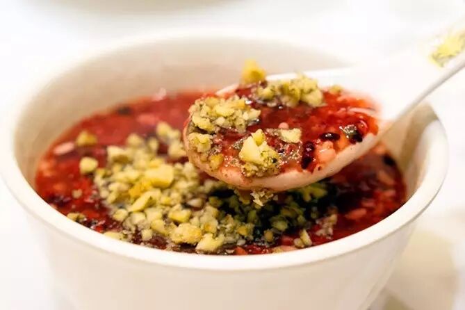 ▲在享用之前记得把核桃碎与红酒酿拌匀,挖上一大勺送入口中,红酒酿的酒味道比普通糯米酒酿更甘甜醉人,此等风味岂能错过?