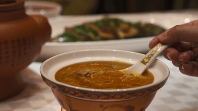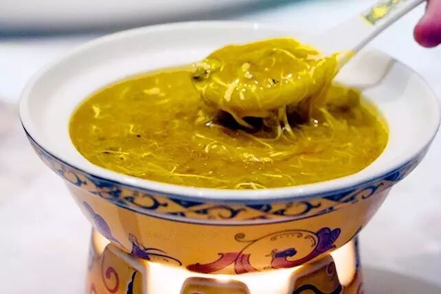 ▲金华火腿、竹林鸡肉、家藏陈皮、上等冬菇、顶级瑶柱等二十种原料精心煲制上等汤料,搭配鱼唇和翅裙,对于这碗料理,我只想说鲜得眉毛掉下来!