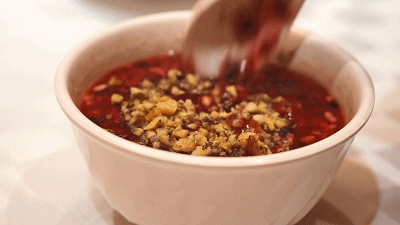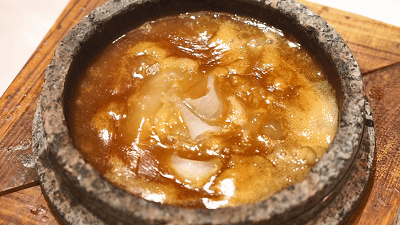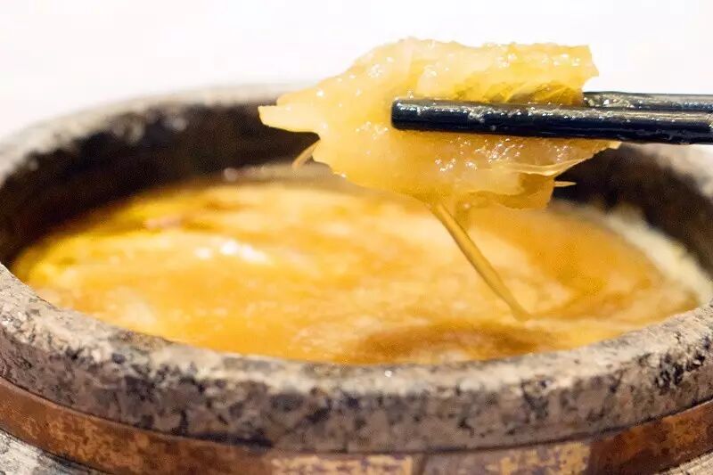 ▲一上桌你便能看到这“卟噜卟噜”的冒泡,那是因为装盘的火山石锅有200度高温。这碗翅汤在高温中被全完激发出了鲜美和醇香。