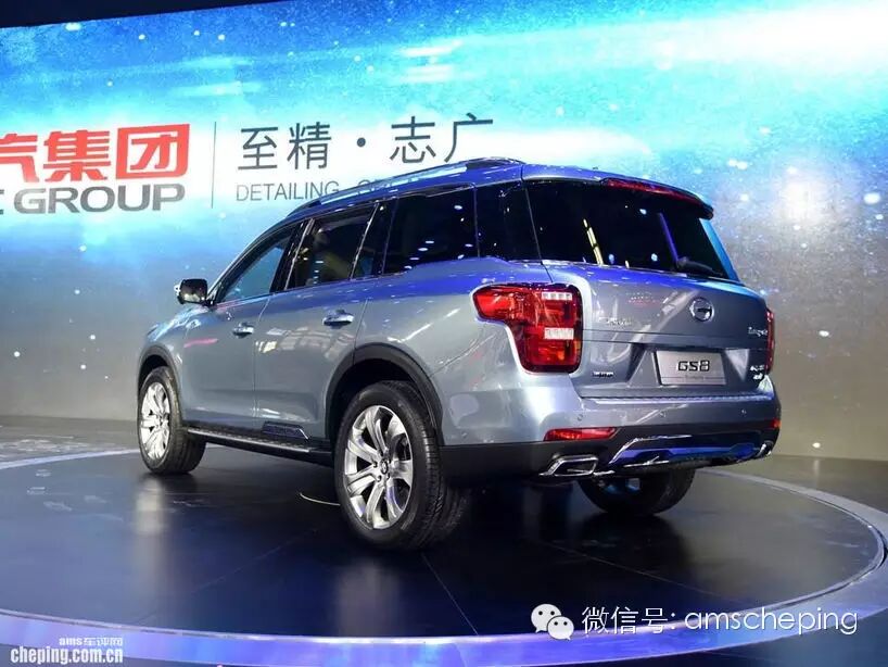 GS8是广汽第一款7座中大型SUV,它整体给人的第一印象就是霸气侧漏!虽然厂家并未公布更多尺寸信息,但从现场看,GS8的车长接近5米,宽度在1米9左右,高度不会低于1米8。硕大的车身尺寸不仅会带来更具压迫感的视觉体验,而且是车内大空间最坚实的基础。基于行政级轿车广汽GA8的C级平台(CPMA)打造的GS8,目测其体型要大于汉兰达。