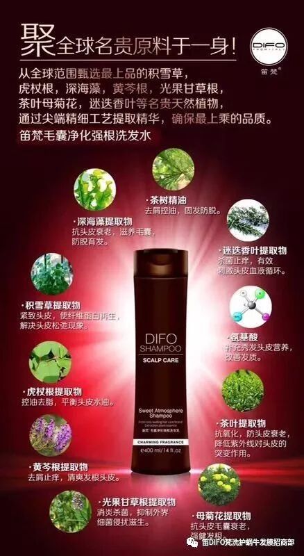 (笛梵毛囊净化强根洗发乳)特含深海藻提取液!不含硅油!水溶性配方!防止头皮衰老!滋养毛囊,调节油脂分泌!从而激活毛囊,达到防脱育发的功效!脱发生发首选它!!如果你也有脱发、头油、头皮痒、头屑多,快来试试笛梵毛囊净化强根洗发乳!