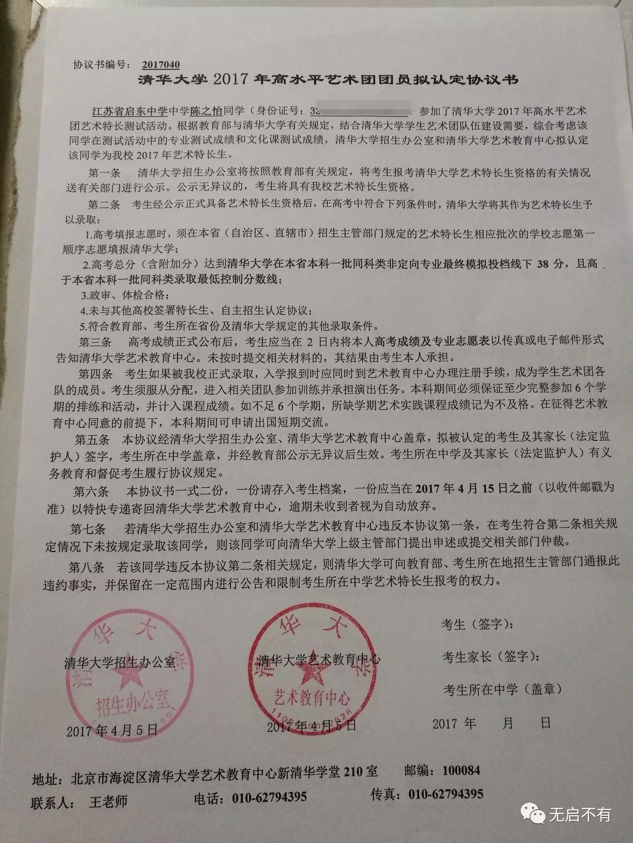 陈之怡艺考成绩优秀,清华签约承诺可享第一批次最终模拟投档线下38分的“优惠”,多年苦练终有成果,小宇宙爆发吧!