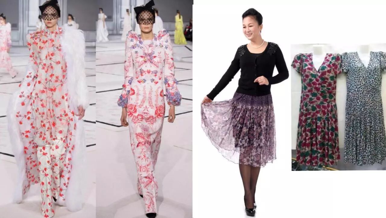 还有这种乍一看高级仙气十足的连体裙,细看的话,和广州十三行老年批发市场里的碎花裙也是不分伯仲。
