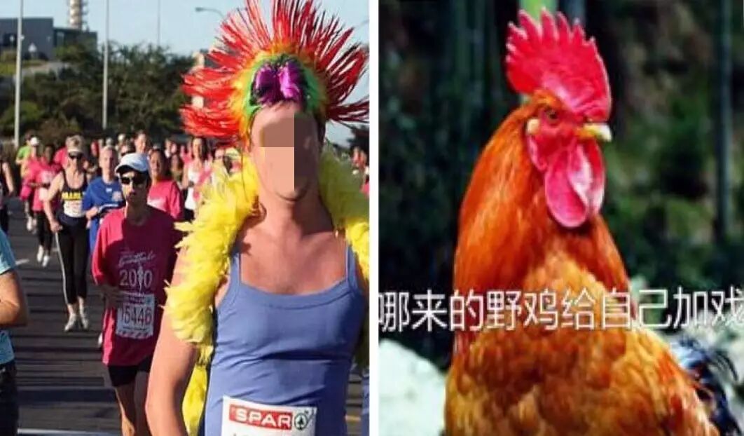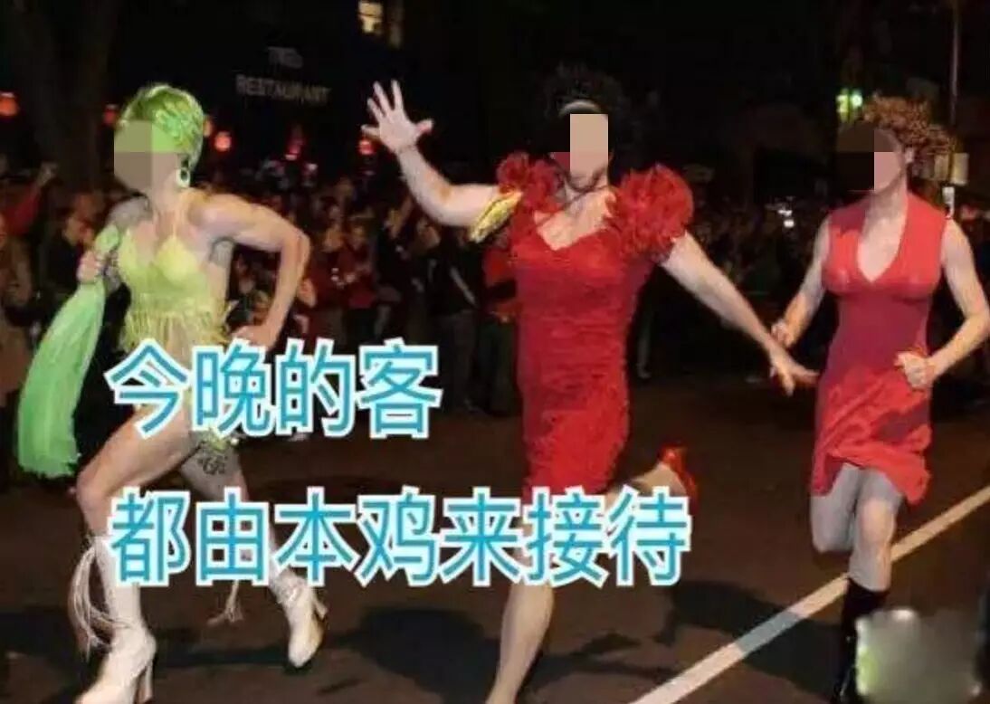 除了这群神婆,基佬群体里爱穿艳服的还有一帮异装癖。可能今年是鸡年,紧跟时尚潮流的异装癖基佬愣是把自己打扮成了一只鸡。