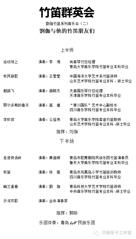 劉伽竹笛系列音乐会(二):劉伽与他的竹笛朋友们---【竹笛群英会】,将于12月10日晚19:30,在青岛音乐厅举行!