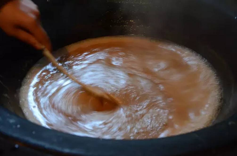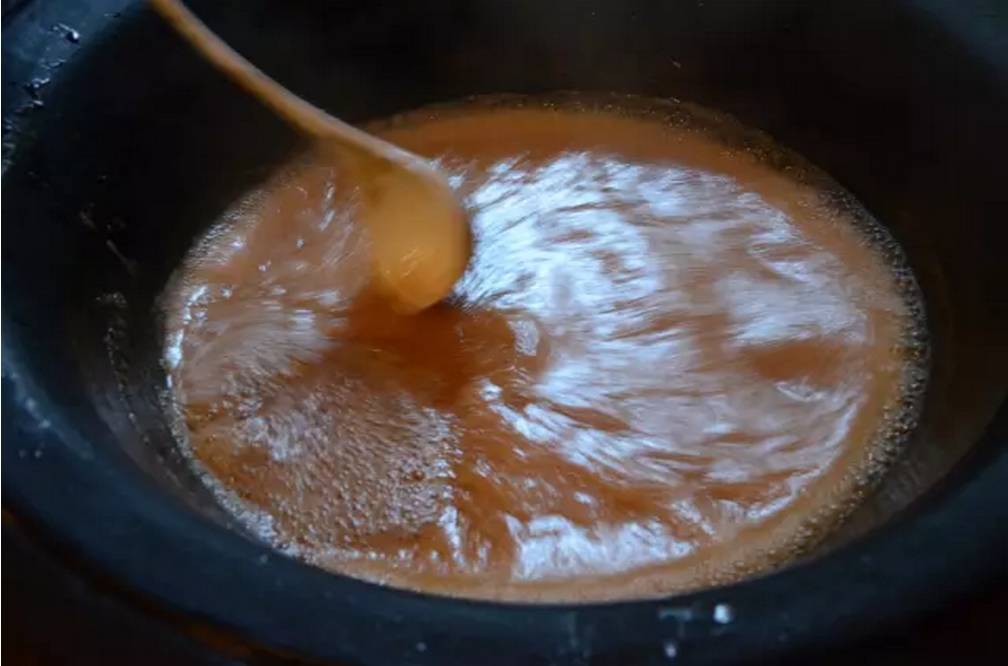 到了七八分干的时候,就更不能离人了,得不停地搅拌,还要改用微火慢慢地熬,直到膏汁全部变成黏稠状,这才算是大功告成。