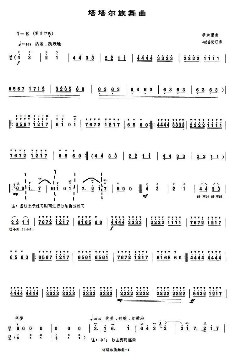 《族舞曲》是笛子学习中的一首经典的初中级难度乐曲,今天为大家带来的这一版教学视频是由青年笛子演奏家,广东海洋大学音乐舞蹈系专业教师马强老师的讲解,视频中马强老师讲解十分详细,重点突出,清晰明了,并且更难得可贵的是,在视频讲解的同时,他一并把乐谱进行详细校对,做出和视频内的讲解相匹配的一份乐谱。在此提醒:音乐的装饰处理是多种多样的,不同的演奏家有不同的处理方式,这并不是唯一不变的,马强老师也在视频内提醒大家,自己所做的装饰处理属一家之言,仅供参考。
