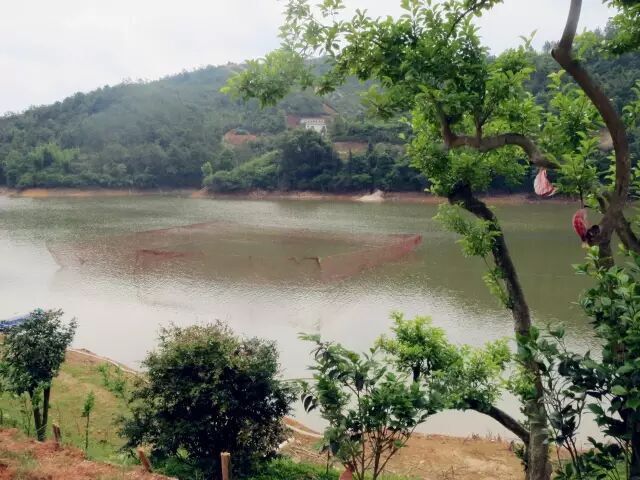 占地500亩的梧地径水库。知青们来时水库正在放水。巨大的鱼网能升能降,捕捞时鱼网沉入水中,投以饲料引诱鱼群,提上来就行。