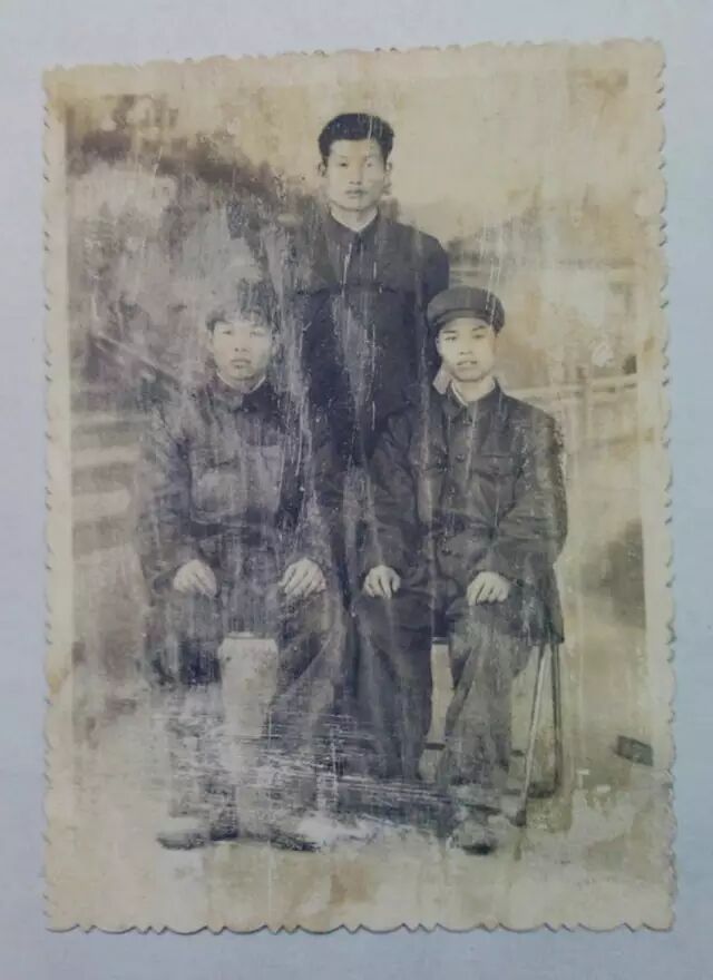 知青海华与老乡达元同时参军入伍,跟达元的二哥达宏一起合照