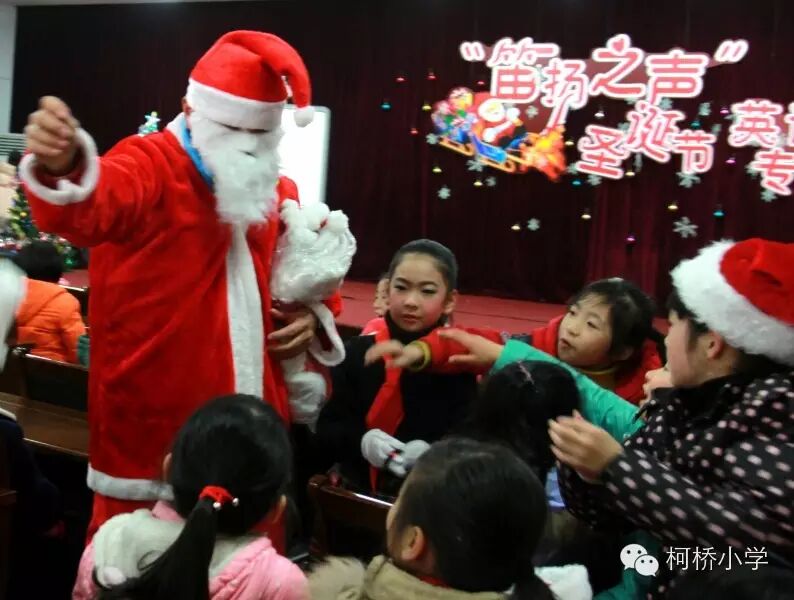 12月25日下午,柯桥小学体艺楼一楼内,座无虚席,热闹非凡,“笛扬之声”英语文化节如期举行,整个校园充满了浓浓的节日气氛。活动在三年级的歌舞表演《圣诞朋友歌》中拉开序幕,小朋友们载歌载舞,动感的音乐,欢快的舞姿点燃了全体师生的活动激情。神秘嘉宾——由两位老师扮演的圣诞老爷爷的现场出现,更是掀起了活动的高潮。紧接着,故事演讲、歌曲联唱、英语童话剧等节目轮番上演,迸发出了柯小学生的无限活力,也博得了全体师生的阵阵喝彩。
