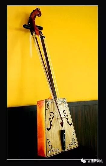 马头琴是一种两弦的弦乐器,有梯形的琴身和雕刻成马头形状的琴柄,为蒙古族人民喜爱的乐器。